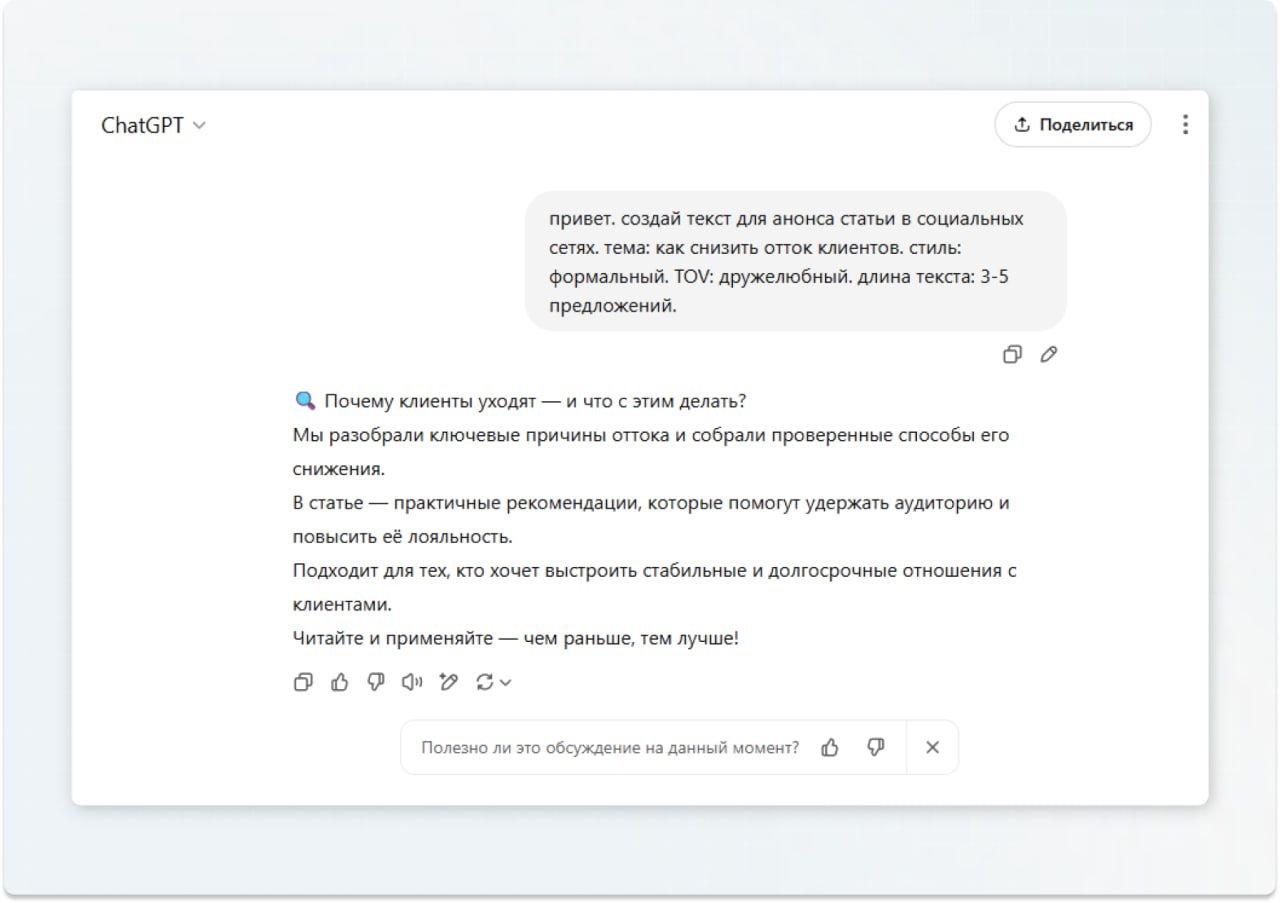 - В создании контента. ИИ создаёт тексты для постов, писем, лендингов, сценариев и слоганов.