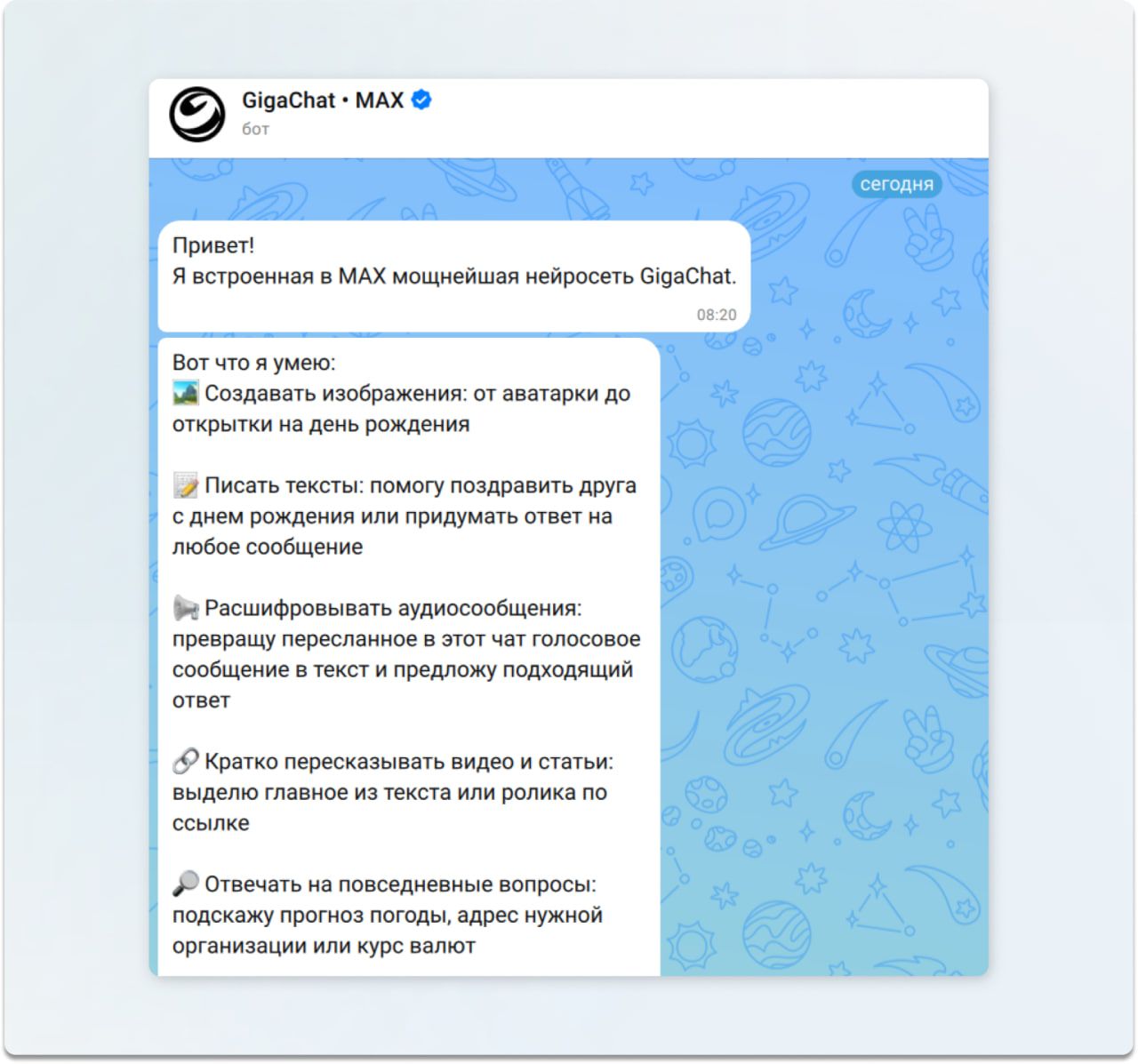 В марте 2025 года VK запустила бета-версию нового мессенджера MAX. Его задумывают как российский аналог WeChat — приложение, где можно не только переписываться, но и оплачивать счета, запускать ботов и мини-приложения для бизнеса.