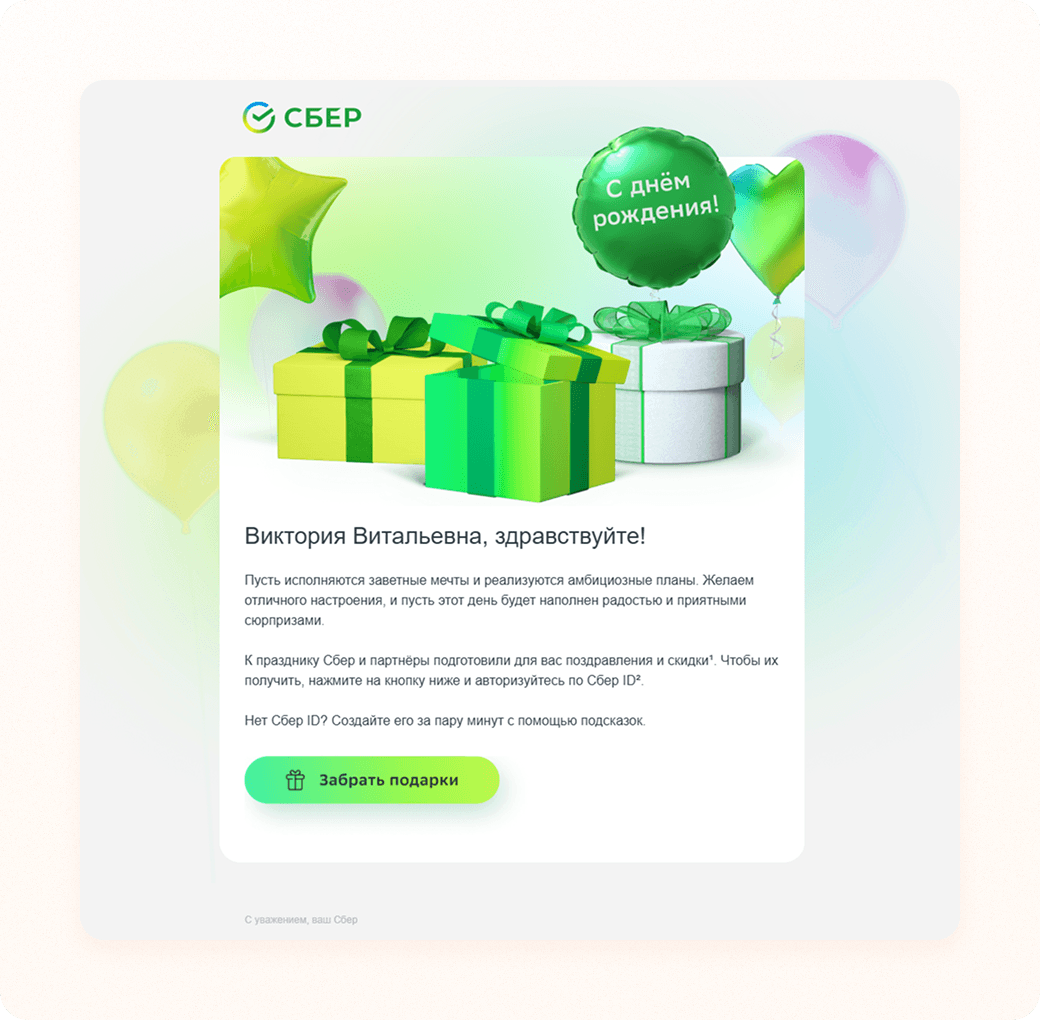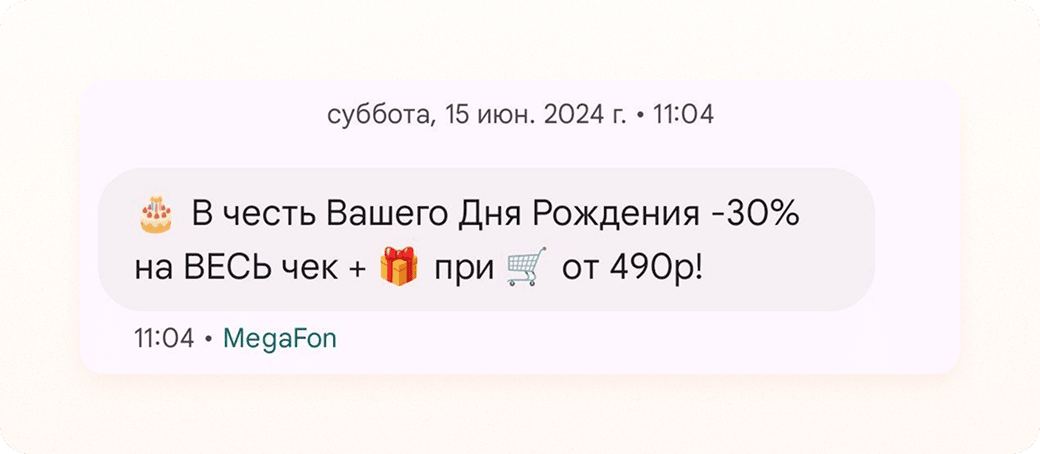 Укрепляем связь. Когда бренд помнит о важной дате, покупатель чувствует, что его ценят. Грамотное поздравление покажет, что вы о нём заботитесь. Это первый шаг к формированию лояльной аудитории с высоким показателем пожизненной ценности (LTV).