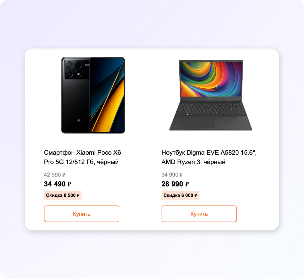 Одного обращения по имени давно недостаточно. Важно учитывать поведение пользователя на сайтах и в приложениях бренда, его реакцию на прошлые коммуникации, предпочтения, историю покупок и другие сигналы. Тогда сообщения выглядят уместно и действительно работают.