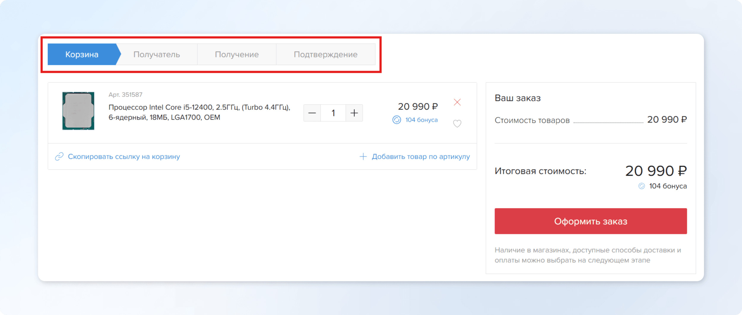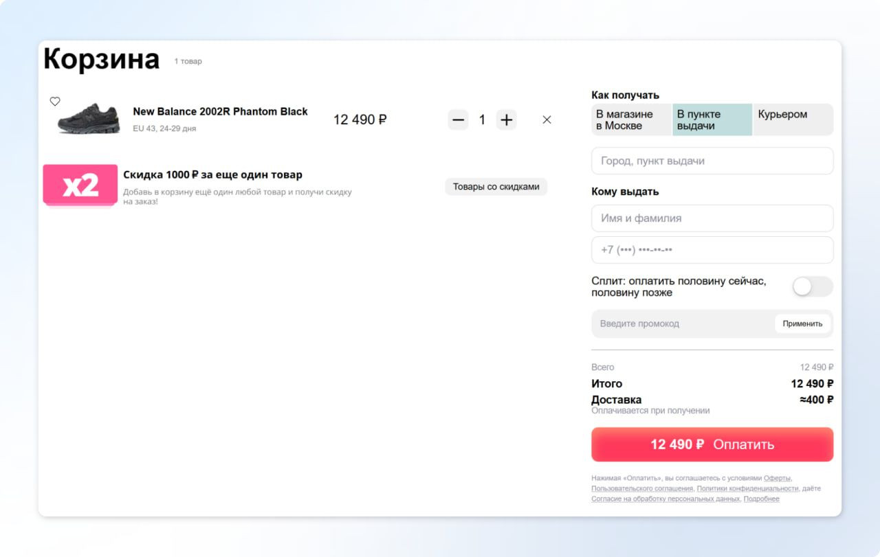 Именно здесь намерение переходит в действие и формируется весомая часть общего впечатления от покупки. Поэтому качество оформления и юзабилити способны сильно повлиять на конверсию из корзины в заказ.
