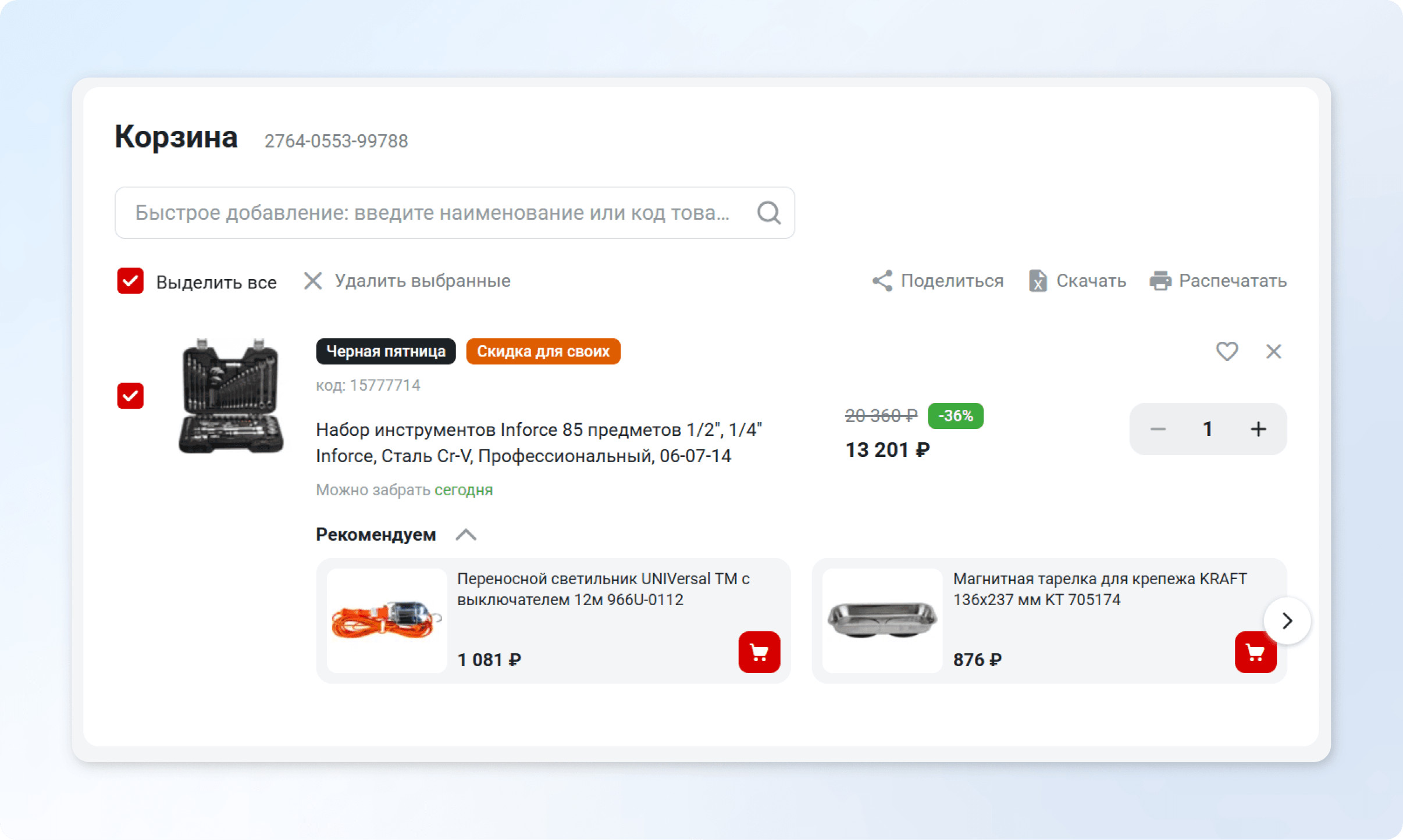 Задача корзины — кратко резюмировать выбор и направить к дальнейшим шагам. Клиент должен получить ответы на четыре базовых вопроса: