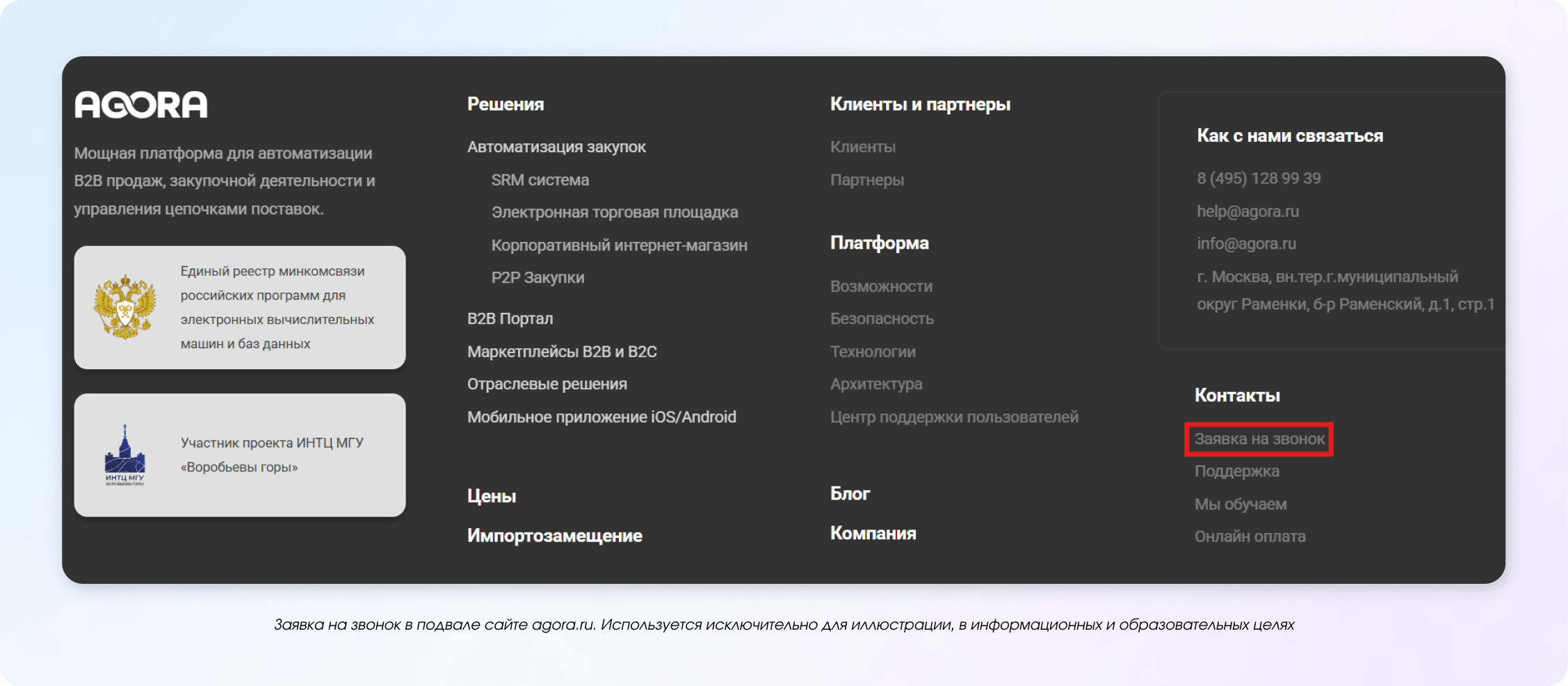 Например, целью обратного звонка могут быть: