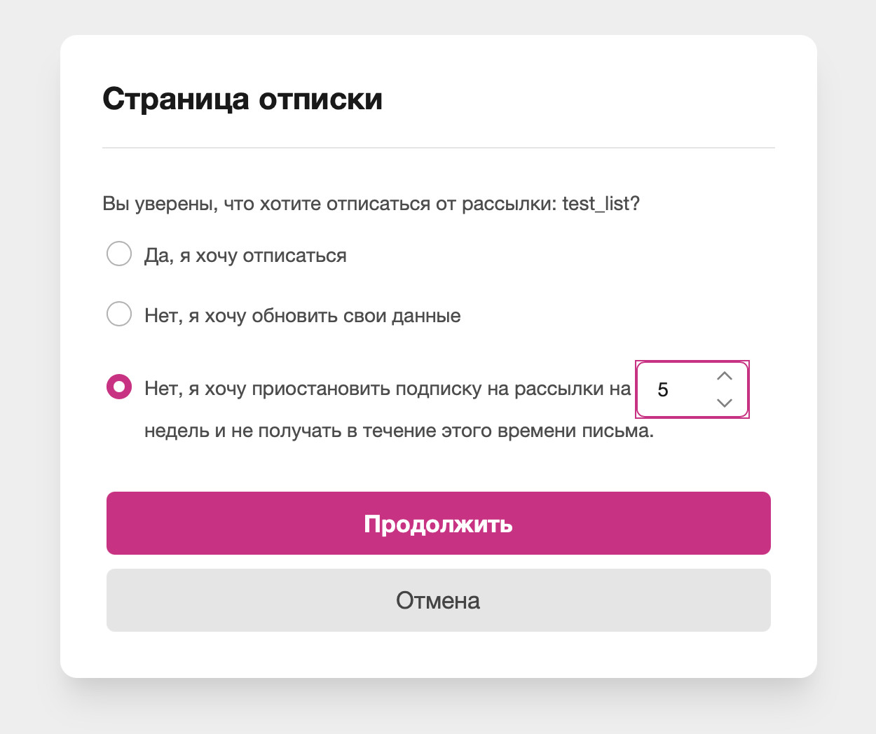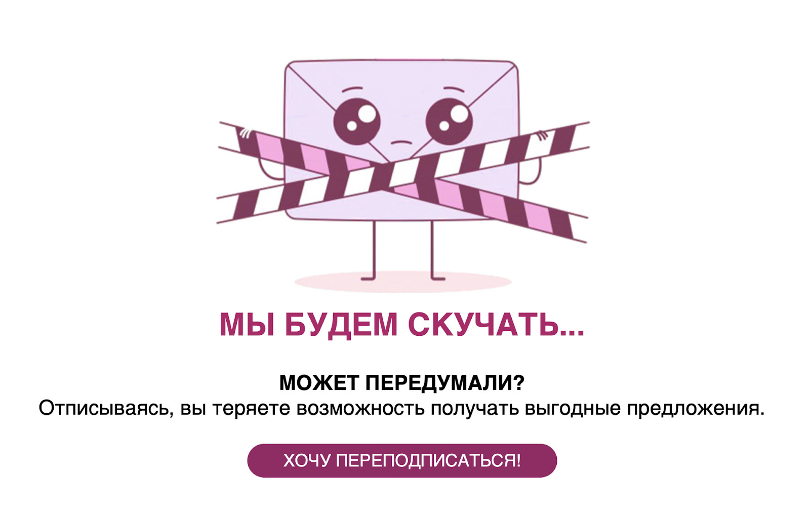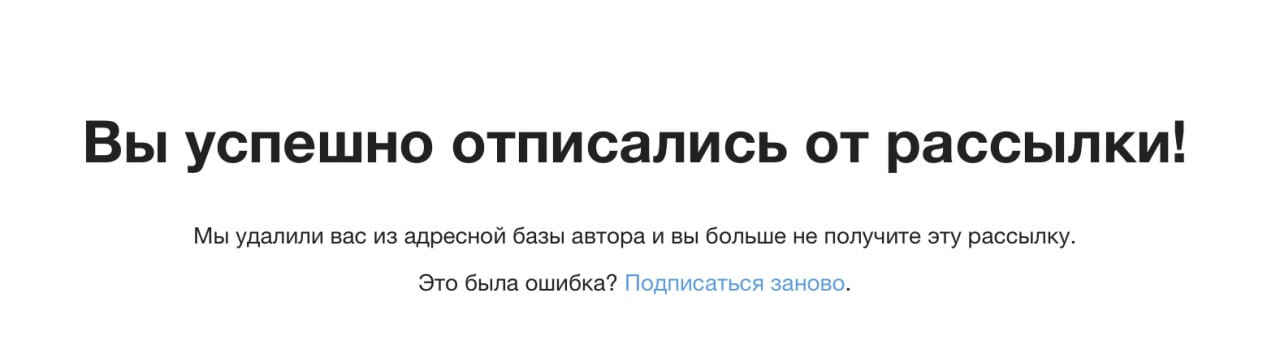 Случайная отписка. Важно оставить подписчику шанс вернуться в список рассылки сразу, если тот отписался по ошибке.