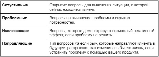 Классическая воронка продаж — модель AIDA, состоящая из четырёх этапов. Другой тип — это воронка маркетинга, которая повторяет пять этапов продаж. В розничных офлайн-магазинах все пять шагов проходят в разговоре здесь и сейчас. А вот воронка продаж в интернете из таких этапов не всегда быстрая, иногда процесс включает созвоны, переписки, отправку файлов. Ещё один вариант — метод СПИН. Его создатель Нил Рекхэм заявил, что классические стадии продаж из пяти шагов неэффективны для крупных и сложных сделок, какие бывают в B2B. По СПИН менеджер работает на каждом этапе с разными типами вопросов, которые выявляют проблему клиента, уточняют и подводят к покупке.