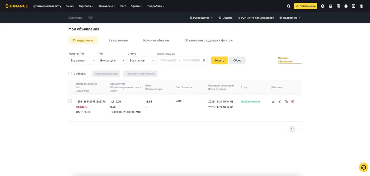 Вы решили осуществить P2P сделку по обмену криптовалюты на фиат с выводом на вашу банковскую карту. В качестве инструмента используете Binance P2P, либо другую платформу. Вы создаете объявление о продаже криптовалюты. На ваше объявление откликается мошенник.