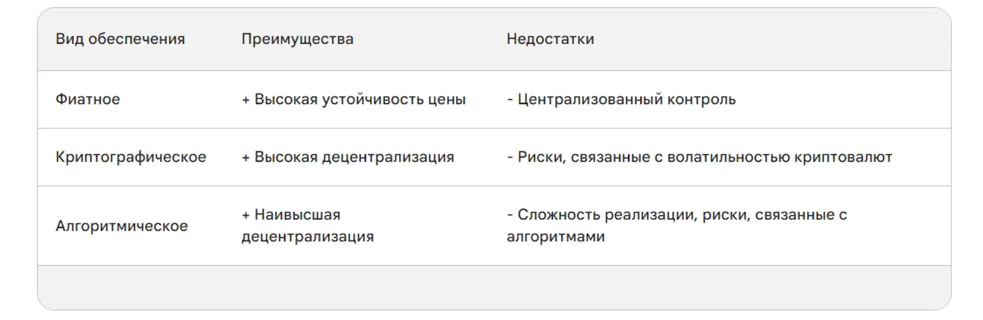 Итоговый рейтинг по мнению агентства S&P оказался следующим: Рейтинг S&P Global утверждает, что не все стейблкоины оказались надежными. К примеру, самый популярный стейблкоин в мире (USDT) не то, чтобы получил самую высокую оценку, а упал чуть ли не в самый низ рейтинга. В связи с этой новостью, наша команда решила подробнее осветить стейблкоины. Стейблкоин (stablecoin) — тип криптовалюты, стоимость которого привязана к той или иной фиатной валюте (то есть обычной валюте, например доллару или евро) или физическому активу (например, золоту). В теории стейблкоин можно в любой момент времени купить или продать по фиксированной цене. При обмене монеты на фиатные деньги стейблкоин, как правило, «сжигается» и выходит из обращения. Так же крайне важной характеристикой для стейблов является вид их обеспечения.Обеспечение стейблкоина — это активы, которые хранятся эмитентом стейблкоина для поддержания его стоимости. Обеспечение гарантирует, что эмитент стейблкоина сможет выплатить держателям токенов их стоимость в случае дефолта. Существует три основных вида обеспечения: Детально расскажем про все токены в рейтинге, механизм и масштабы их блокировок, а так же как разблокировать свои стейблкоины читайте в полной версии нашей статьи: https://amlcrypto.io/ru/blog/stablecoin_valuation
