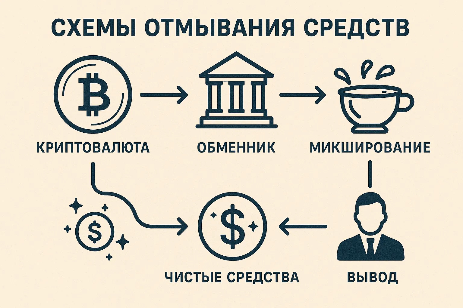 - Миксеры (mixers / tumblers) — смешивание средств с чужими транзакциями для разрыва связей.