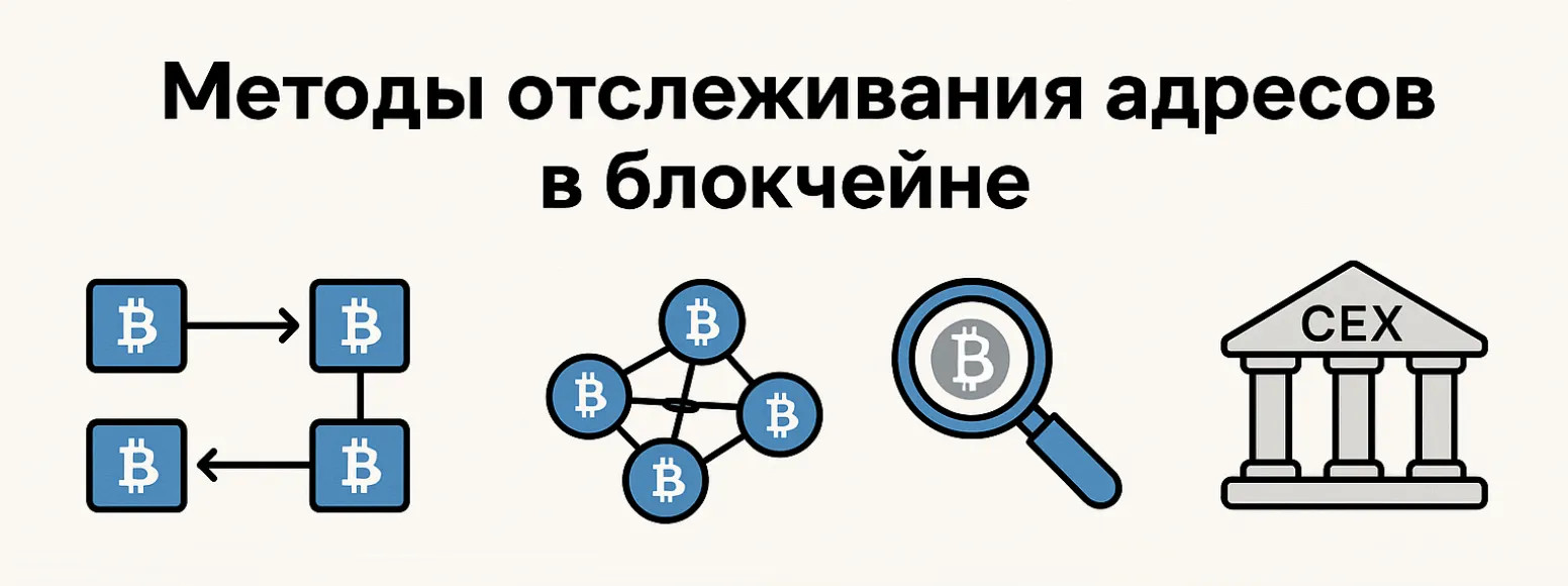 В рамках расследования одна из ключевых задач заключается в установлении достоверной связи между адресами, находящимися под контролем предполагаемых злоумышленников, и централизованными сервисами (CEX). Для этого применялся комплекс аналитических методов, используемых в международной практике blockchain-forensics. Ниже представлены основные подходы.