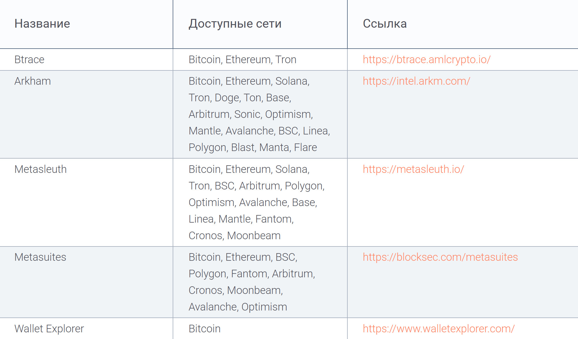 Блокчейн-экплореры: Сервисы для получения разметки по криптовалютным адресам: Эксплореры по основным децентрализованным мостам: Визуализаторы смарт-контрактов: Работа с Big Data: Создание графов связей: Трекинг адресов в блокчейне: