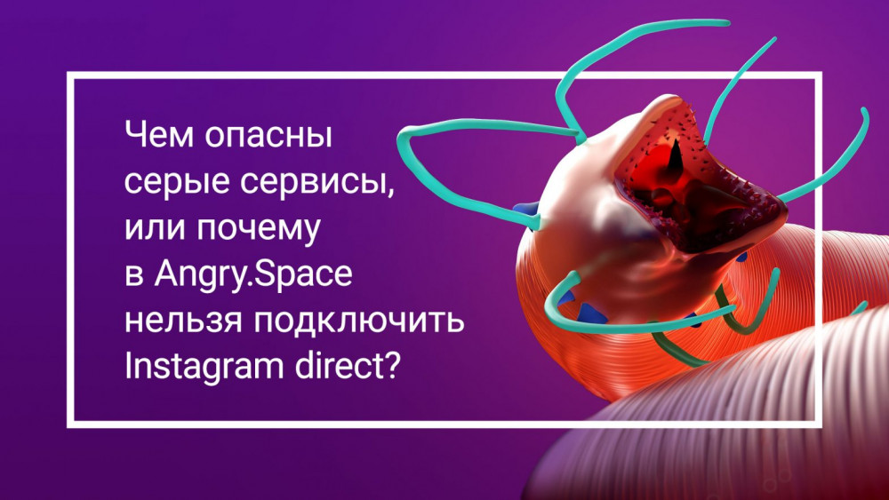 Очень часто мы получаем вопросы о том, почему в Angry.Space нет возможности обрабатывать сообщения и из Instagram direct. Конечно, это было бы круто и удобно — все сммщики мечтают работать с директом с компьютера, так быстрее и сподручнее, а если бы можно было поместить его в единую ленту Angry.Space.... Только представьте, сколько блогеров тогда наконец разгребли бы свой директ. Но сам Instagram не предоставляет такой возможности, а если какие-то сервисы и умеют собирать сообщения из директа, то они действуют против правил и ставят ваш аккаунт под угрозу.