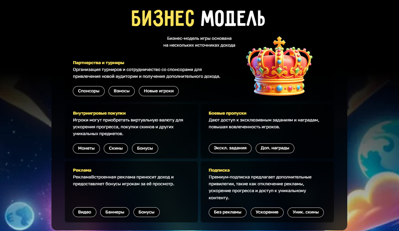 Когда мы начали исследовать рынок мобильных игр, то обнаружили ключевую проблему: игроки перестали верить в ценность виртуальных наград. Тысячи игр предлагали «золото», «кристаллы» и «монеты», но все это оставалось внутри игры и не имело реальной ценности. Игроки чувствовали себя обманутыми, тратя время и деньги на виртуальные блага, которые нельзя было конвертировать во что-то tangible.