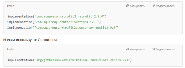 - Retrofit превращает API в простой интерфейс с аннотациями, а с Coroutines он позволяет писать асинхронный код почти синхронно.