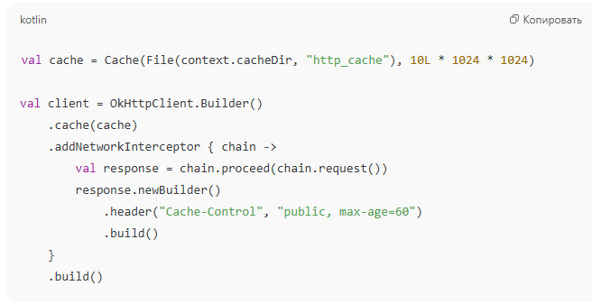 implementation("com.squareup.retrofit2:converter-moshi:2.9.0") Retrofit позволяет описывать запросы как обычные интерфейсы: Важно: метод suspend означает, что он выполняется асинхронно, без блокировки потока. Это ключевая особенность Coroutines, которая делает их удобными для сетевых операций. Даже динамичные API можно частично кешировать, если использовать заголовки Cache-Control. Пример: OkHttp автоматически использует gzip, но можно контролировать заголовки вручную, особенно если API это поддерживает. При нестабильном соединении важно грамотно обрабатывать ошибки. Пример: Можно использовать обёртки Result, sealed class или Flow для более элегантной обработки. Если приложение должно загружать много данных одновременно, используйте coroutineScope {} или async {}: Плюс — никаких callback-адов и вложенности. Для проверки запросов без настоящего сервера используем MockWebServer от Square: Это особенно полезно при CI/CD или тестировании редких ошибок (например, 500 от API). В 2025 году оптимизация сетевого слоя критична для скорости, стоимости и стабильности приложений. Особенно если: Использование OkHttp и Retrofit по-прежнему остаётся разумным выбором, особенно в сочетании с современным подходом — Kotlin Coroutines, DI (например, Hilt), Flow и архитектурой Clean Architecture. Грамотно построенный сетевой слой — это не просто способ «получать данные с сервера». Это важный элемент UX, от которого зависит, будет ли приложение быстрым, надёжным и отзывчивым. Retrofit и OkHttp — проверенные временем инструменты, и, правильно используя их возможности, вы сможете избежать множества проблем на проде и улучшить опыт пользователя уже на этапе разработки.
