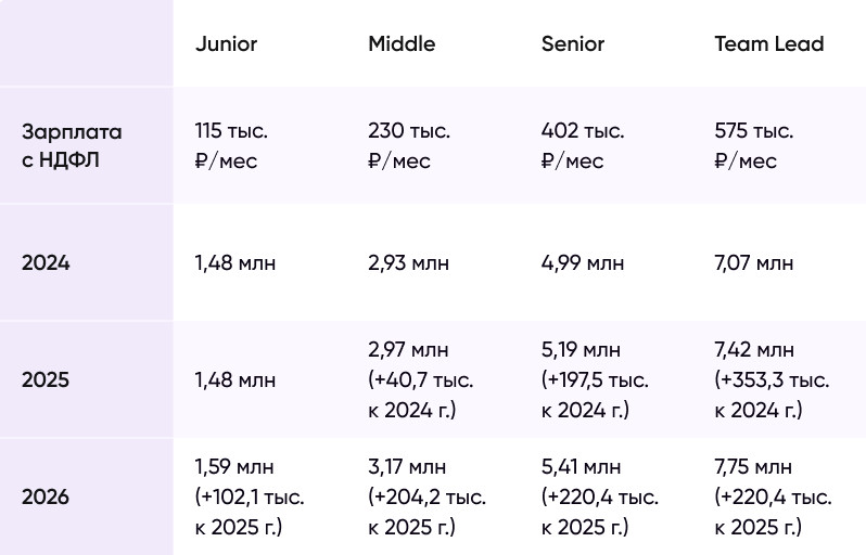 Рассмотрим, как изменения повлияют на реальную стоимость middle-разработчика с условной зарплатой 200 тысяч рублей в месяц: Изменения по-разному влияют на сотрудников разного уровня. Очевидно, что чем выше зарплата сотрудника, тем больше абсолютное увеличение затрат для компании. Даже после всех планируемых изменений IT-компании сохранят существенные льготы: Налоговые изменения для IT-компаний отражают общую тенденцию к нормализации налоговой нагрузки после периода исключительной поддержки. Основные выводы: → Подпишитесь на наш телеграм-канал