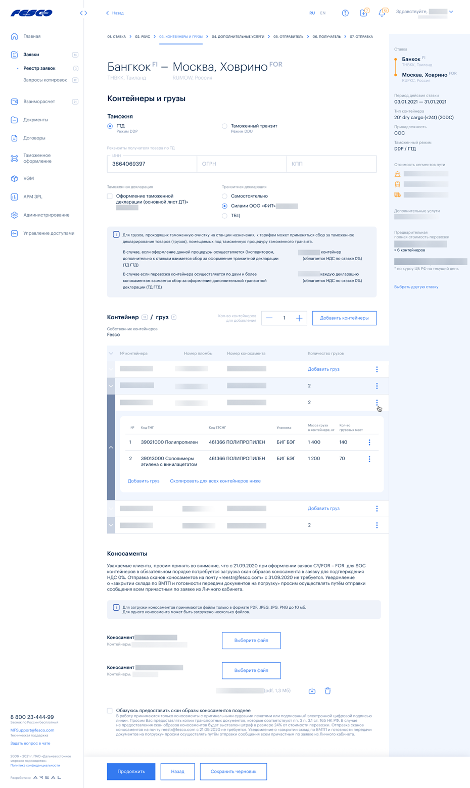 Большинство наших проектов — личные кабинеты для клиентов мультимодальных, железнодорожных, морских перевозчиков и экспедиторов: FESCO, Рускон, ПГК, Логопер, Логистика1520, ТрейдТранс.