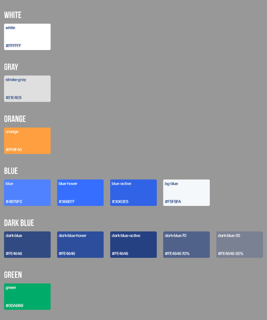- акцентные цвета — оранжевый и светло-синий, применяются для кнопок, иконок и выделения ключевых элементов;