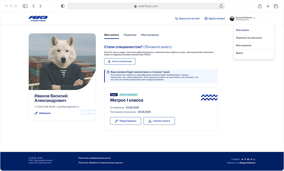 Цифровой путь от отклика до первого рейса. Как мы создали сайт, портал и мобильное приложение для моряков FESCO