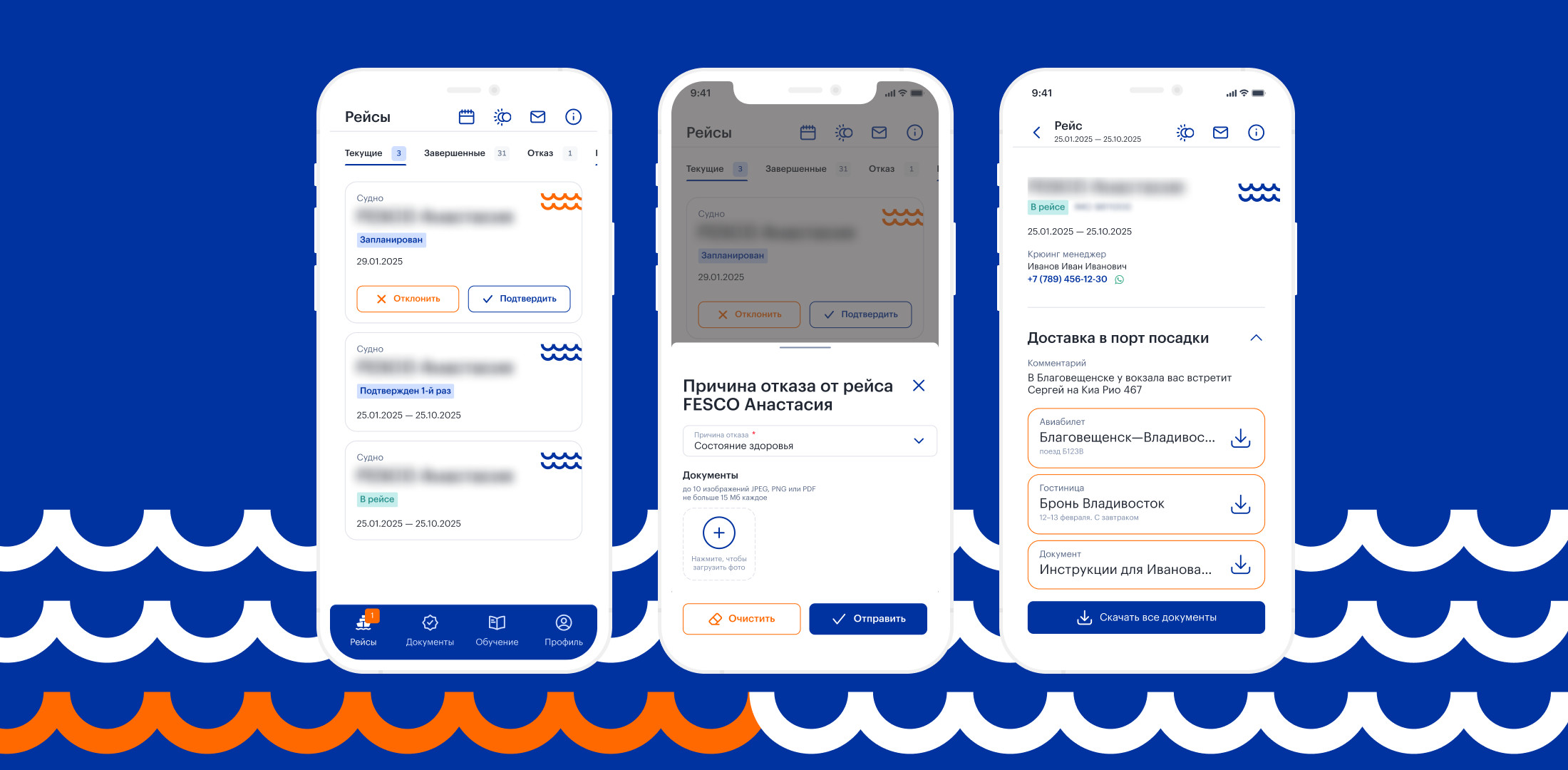 Хорошо, что будущие и прошлые рейсы «хранятся» в одном месте. Мне нравится, что я заранее вижу, на какое судно меня определили на будущее и прописана примерная дата посадки, чтобы я планировал и был готов к этому времени. Еще удобно, что сразу вижу ФИО менеджера, который меня курирует. Если есть вопросы, можно спокойно позвонить или написать ему прямо из приложения.
