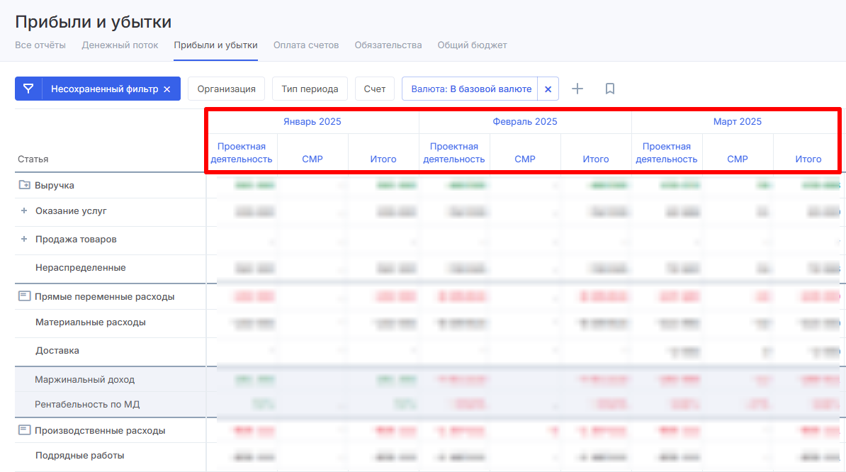 Выделить направления в статьях учета. В этом случае вы будете видеть доходность по каждому направлению, но расходы останутся общими — как и расчет прибыли и рентабельности. Такой подход подойдет компаниям, которым важно отслеживать прибыль по ключевым направлениям без сложной детализации затрат.