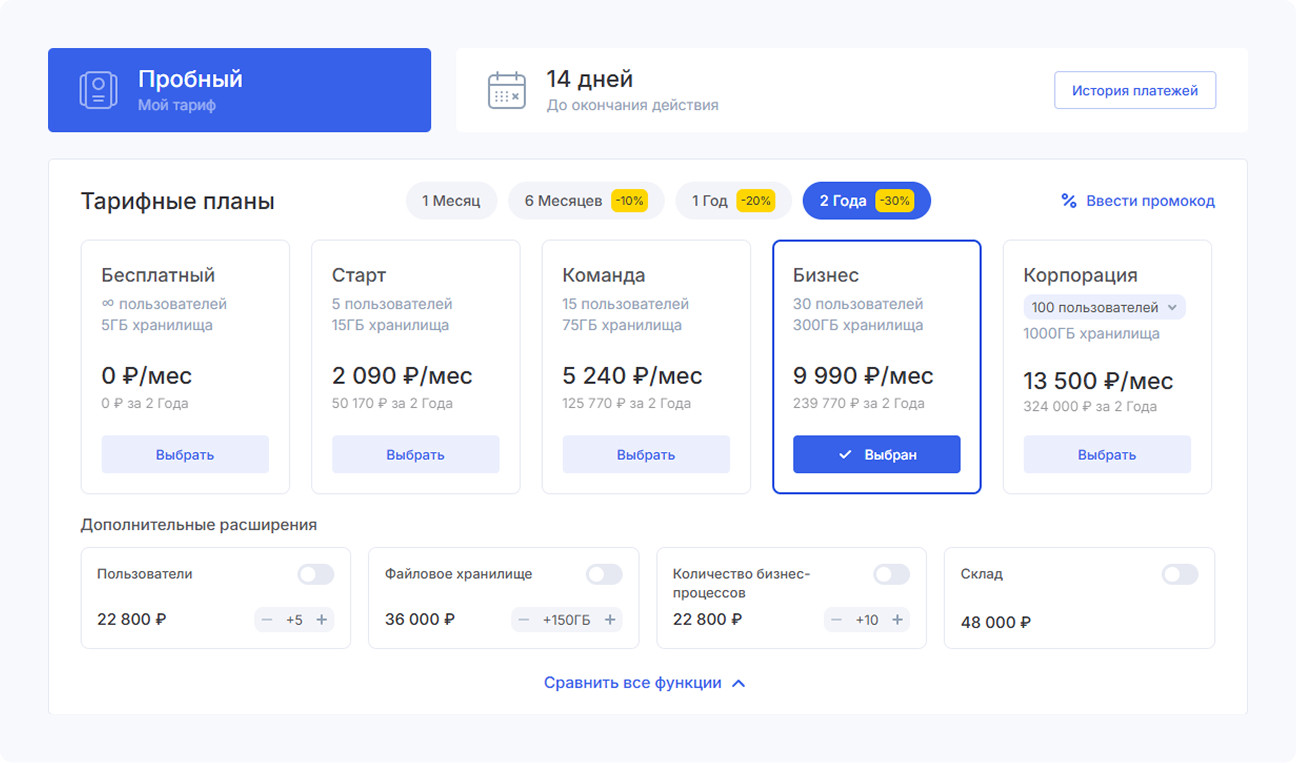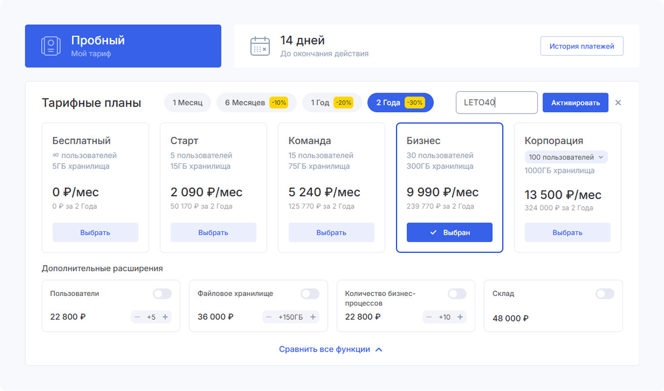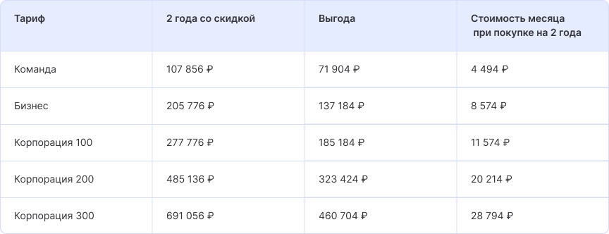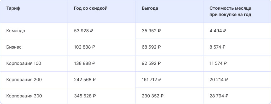 • В акции участвуют тарифы «Команда», «Бизнес» и «Корпорация».