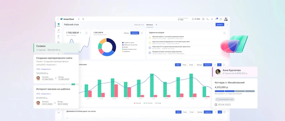 Аспро.Cloud объединяет инструменты для планирования, проектного управления и финансового учета. Такая интеграция помогает компании синхронизировать работу отделов, ускорять выполнение задач и контролировать эффективность каждого направления.