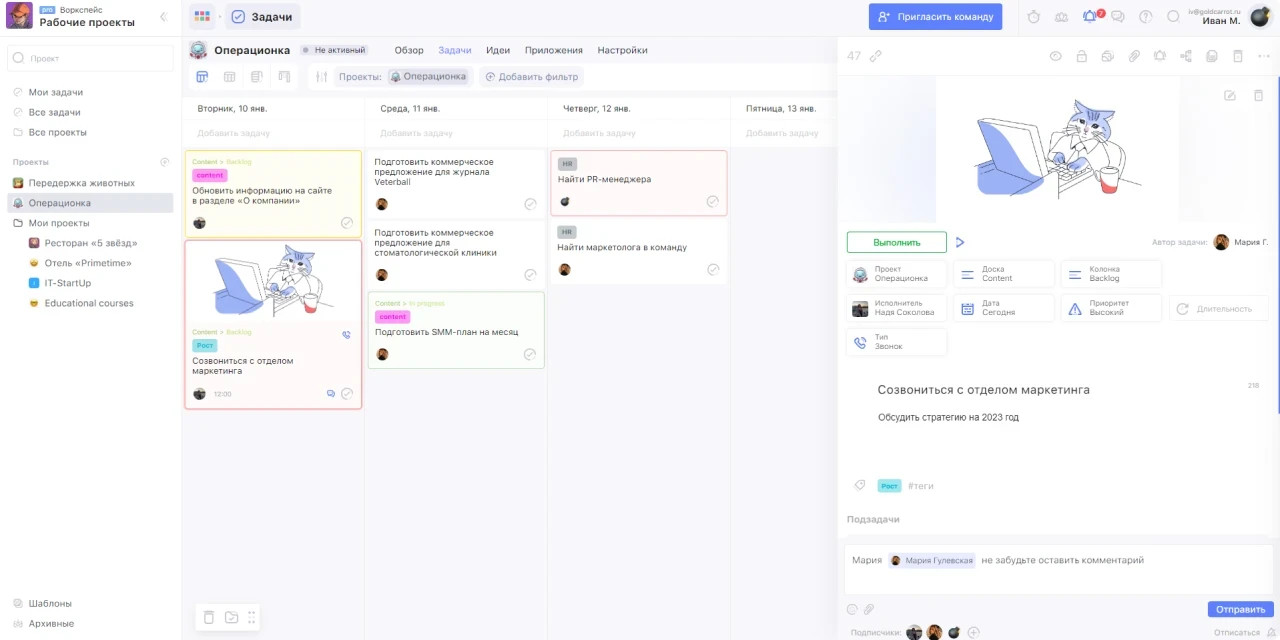 - Мобильное приложение. Приложение для iOS и Android позволяет работать с задачами в дороге, на встрече или дома. Можно добавить идею, оставить комментарий или отметить выполненное действие прямо с телефона. План всегда под рукой, а прогресс виден в реальном времени.