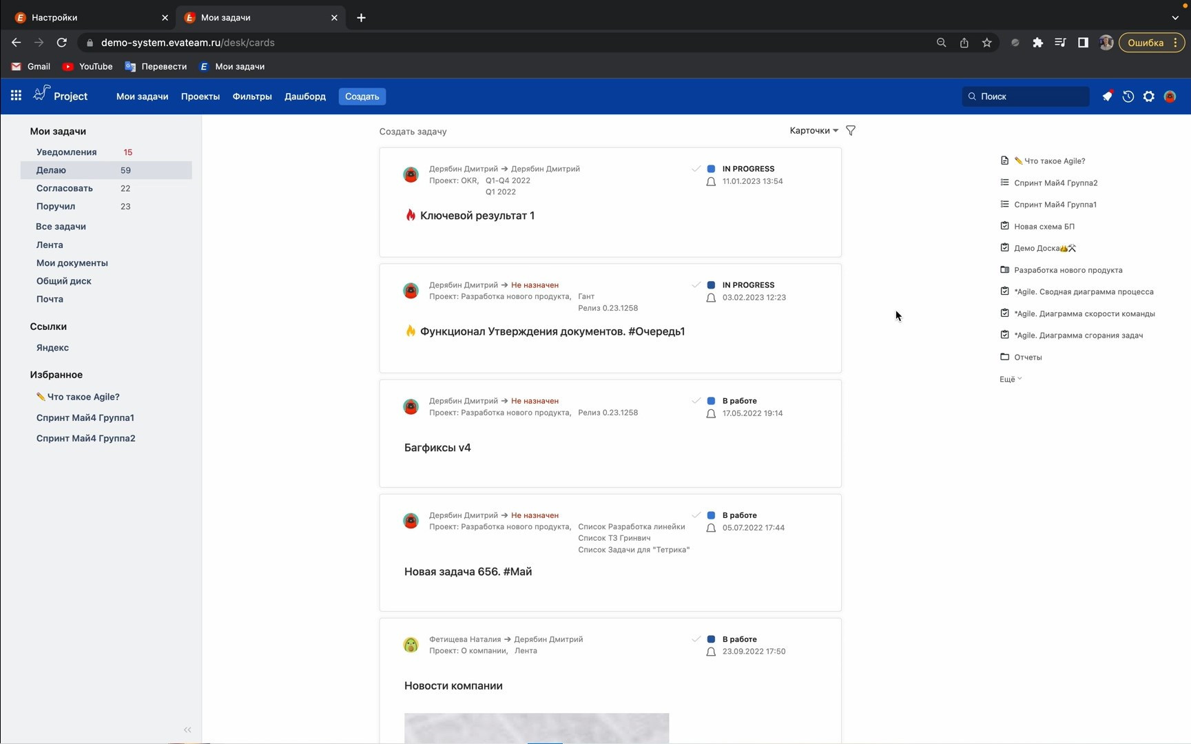 EvaProject — система для управления проектами и задачами, которая сочетает в себе функции планировщика, CRM и инструменты для автоматизации бизнес-процессов.