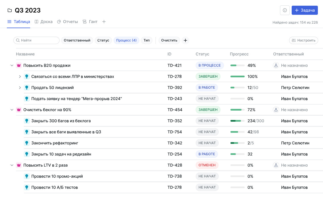 - Аналитика и отчеты. Платформа предоставляет различные отчеты по выполнению задач. Это помогает анализировать динамику работы команды и выявлять области для улучшений.