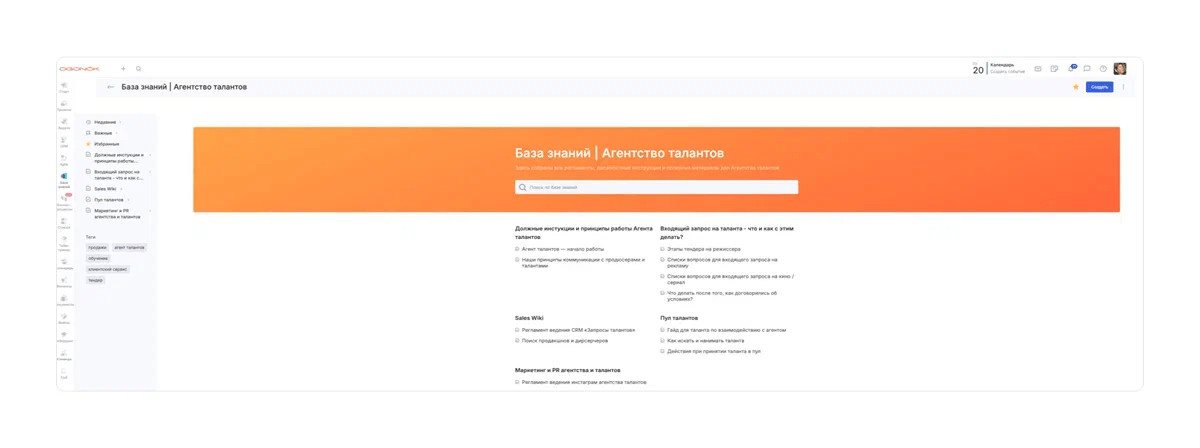 Дополнительно система использовалась для хранения баз знаний: данные фрилансеров, аналитика конкурентов, внутренние регламенты.
