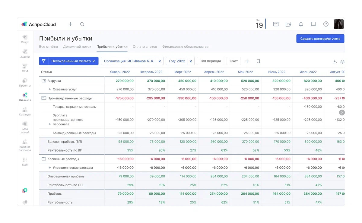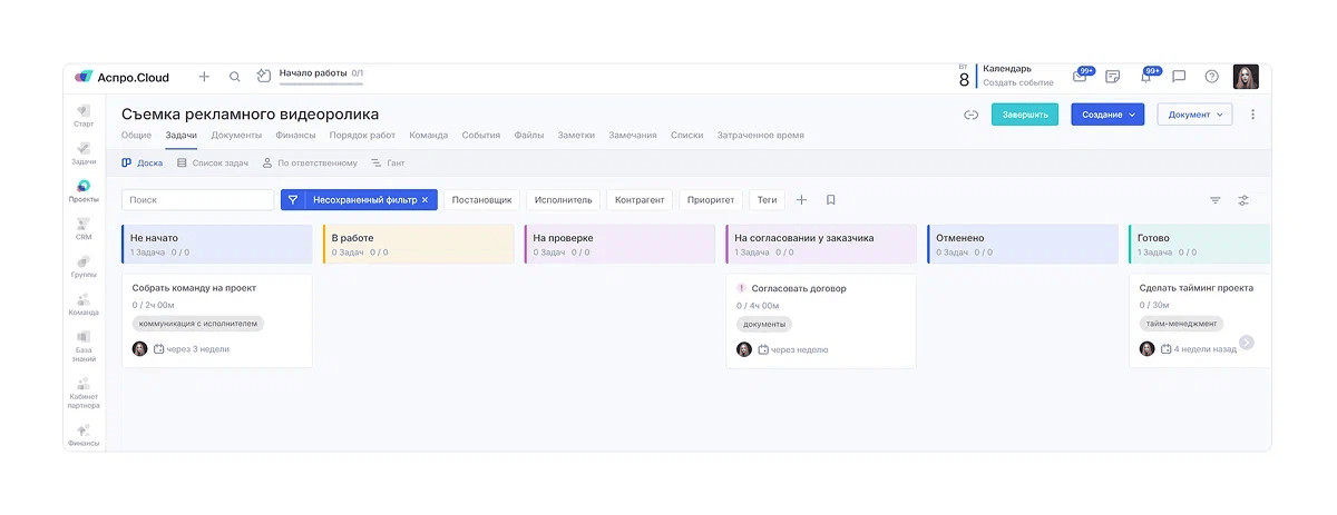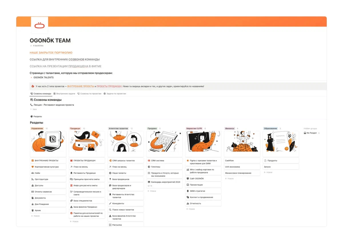 «Мне очень понравилась CRM-система. В отличие от других сервисов она понятная, нормально работает и не раздражает», — комментирует Тая Курковская. В модуле работают только продюсеры, которые отслеживают все этапы выполнения и перемещают карточки задач за внештатных специалистов без доступа к системе. Команда использует систему тегов для классификации задач: Для разных типов задач применяются различные методологии: Модуль используется для систематизации всей рабочей информации: регламенты, должностные инструкции для фрилансеров, внутренние стандарты. «Меня порадовал функционал базы знаний. Текстовый редактор очень понятный. А после публикации нескольких статей сама база знаний выглядит очень четко и удобно. Плюс мы перенесли все наши регламенты из предыдущей системы за один день без потери эргономичности», — отмечает руководитель. Этот модуль пока находится в планах к освоению. В прежней системе руководители анализировали только ожидаемые поступления без финансового планирования и прогнозирования. «Круто, что в системе есть финансовый учет. Я такого вообще нигде еще не видела, чтобы в системе управления компанией сразу было все и в одном месте», — подчеркивает Таина Курковская. Команда OGONÖK продолжает изучать возможности новой системы и переносить данные. По словам Всеволода Курковского, адаптация проходит успешно: «Пока в Аспро.Cloud все логично и нормально работает. Создаем теги, настраиваем воронки, заносим данные о контрагентах, задачки внутри можно поставить. Меня это все вполне устраивает». Переход на российскую платформу позволил агентству: Опыт OGONÖK показывает, что грамотно выбранная отечественная система управления способна не только заменить зарубежный аналог, но и предоставить дополнительные возможности для развития бизнеса. Проекты расползаются по чатам и таблицам? Соберите их в одном месте в Аспро.Cloud и управляйте легко. Попробуйте бесплатно 14 дней.