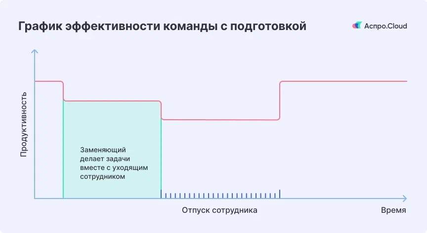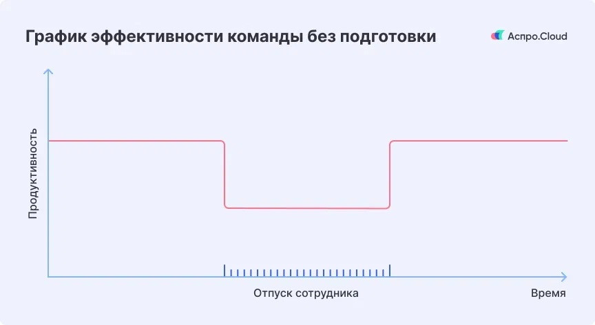 Самый простой вариант — таблица, где сотрудники указывают даты. На старте этого достаточно: инструмент понятный, быстрый в запуске и не требует дополнительных ресурсов. Но по мере роста компании появляются ограничения: В какой-то момент становится очевидно: таблица фиксирует информацию, но не помогает управлять процессами. Поэтому компании переходят к инструментам, где учитываются все виды отсутствий и отображается загрузка команды в динамике. Руководитель в любой момент видит, кто отсутствует и как это влияет на выполнение задач. Чтобы график действительно помогал управлять, его нужно составлять системно: Такой подход помогает избежать ситуаций, когда одновременно отсутствуют ключевые сотрудники. Отпуск можно делить, но есть ограничение: одна часть должна составлять не менее 14 дней. Остальные дни сотрудник распределяет по договоренности с работодателем. На практике компании часто вводят дополнительные правила. Например, разрешают делить оставшиеся дни только на равные части. Это упрощает процесс согласования и снижает нагрузку на планирование. Если таких правил нет, сотрудник сам определяет формат разделения, и это важно учитывать при составлении графика. Главный риск отпуска — потеря контроля над задачами. Чем больше зона ответственности у сотрудника, тем сильнее влияние на работу команды. Подготовку лучше начинать за 2–4 недели до ухода. Сначала нужно определить, чем именно занимается сотрудник. Должностной инструкции обычно недостаточно — она дает слишком общее представление. Поэтому стоит составить список фактических задач и разделить их на три категории: Это позволяет расставить приоритеты и не перегружать команду лишними задачами. Для задач из первой категории необходимо назначить ответственных сотрудников. Важно учитывать их опыт и текущую загрузку. Ключевой момент — зафиксировать ответственность. Если этого не сделать, задачи с высокой вероятностью останутся без внимания. Особенно это важно при уходе в отпуск руководителя. В таком случае нужно четко передать полномочия, чтобы избежать неопределенности и конфликтов. Лучший вариант — передавать задачи постепенно. Сотрудник, который будет замещать коллегу, подключается к работе заранее и выполняет задачи вместе с ним. Это помогает: На этом этапе команда может временно терять в эффективности. Это нормально: часть времени уходит на обучение. Именно так выглядит ситуация при подготовке: сначала есть небольшая просадка, но после ухода сотрудника команда продолжает работать стабильно. Если задачи передают в последний момент или не передают вовсе, ситуация развивается иначе: В итоге просадка становится глубже и длится значительно дольше. Документирование процессов снижает зависимость от конкретных сотрудников. Инструкции можно оформить в виде коротких текстов или чек-листов. Лучше всего создавать их параллельно с передачей задач. В этот момент становится понятно, какие действия обычно выполняются автоматически и не фиксируются. Со временем база знаний превращается в отдельный инструмент. Она помогает не только в период отпусков, но и при больничных или смене сотрудников. Отпускные создают дополнительную нагрузку на бюджет, так как их выплачивают заранее. В этом их отличие от стандартной зарплаты. Если несколько сотрудников уходят в отпуск в од