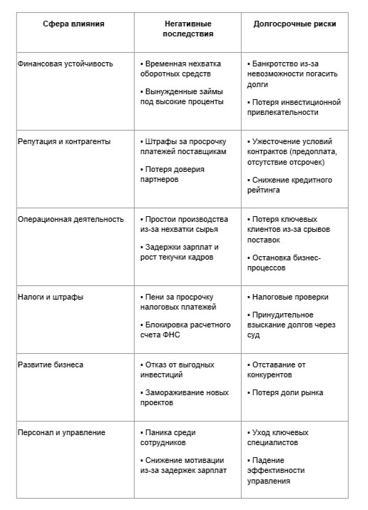 1. Некорректное финансовое планирование: неточности при оценке будущих поступлений и затрат, недостаток средств для покрытия непредвиденных задержек оплаты.