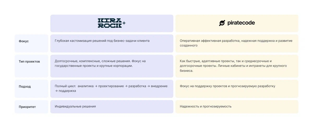 Главная особенность Kira & Rock — глубокая кастомизация решений под задачи клиента. Команда берет на себя полное сопровождение проекта: от аналитики и проектирования до внедрения и поддержки. За счет этого в компании сформировалась сложная финансовая модель, где ведется не только учет затрат на разработку, но и прогнозирование доходности каждого проекта.