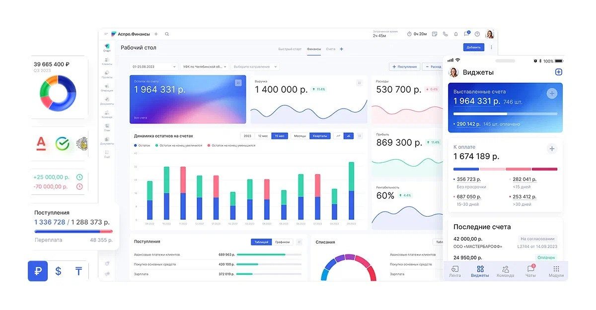 Главный фокус Piratecode — на поддержке проектов и эффективности работы над стандартизированными проектами. В отличие от Kira & Rock, где ориентируются на глубокую кастомизацию под бизнес-задачи клиента. Однако это не просто потоковая разработка: в команде активно используется гибкая методология управления проектами, позволяющая на ходу адаптироваться под задачи клиента. Несмотря на различия в подходах, у Kira & Rock и Piratecode есть общая особенность — управление проектами требует детального финансового учета. Важно видеть: • Какие затраты уходят на разработку и поддержку проектов. • Какова себестоимость каждого проекта и можно ли сократить затраты. • Как распределяются накладные расходы между проектами, особенно если команда работает одновременно над несколькими задачами. Ранее этот учет велся в Google-Таблицах, но с ростом компаний управлять финансами в ручном режиме стало слишком сложно. Требовалось больше автоматизации, прозрачности и возможности быстро получать финансовые отчеты — поэтому было принято решение перейти на Аспро.Финансы. Как и при любом переходе на новую систему, компании столкнулись с вызовами. Привычный способ ведения учета в таблицах позволял гибко адаптировать расчеты под конкретные задачи, но требовал постоянных сверок. В Аспро.Финансы структура учета более строгая, и это наложило определенные ограничения. Так как компании работают по проектной модели, важно учитывать не только движение денег (ДДС), но и отчет о прибылях и убытках (ПиУ). ДДС показывает текущее движение средств, но проект может идти 3–6 месяцев, а прибыль будет видна только в финале. Поэтому важно одновременно анализировать деньги «на руках» и фактическую прибыльность бизнеса. Первоначально было сложно адаптироваться к системе, так как компания уже привыкла к расчетам в Google-Таблицах. Но с помощью финансового специалиста удалось выстроить учет под специфику проектной работы и оптимизировать процессы. Сергей рекомендует по возможности привлекать специалиста на этапе внедрения. Еще одна рекомендация 一 в дальнейшем вести систему аккуратно и регулярно. Тогда она будет работать эффективно и помогать в принятии решений. Финансовый учет в Аспро.Финансы ведут финансовые специалисты, которые отвечают за корректный ввод данных, контроль платежей и анализ отчетов. Они работают непосредственно с инструментами сервиса. Руководство компании, в свою очередь, использует дашборды, чтобы быстро оценивать ключевые показатели. Дашборды позволяют видеть текущее финансовое состояние без необходимости погружаться в детали каждой операции. Это упрощает процесс принятия стратегических решений и помогает оперативно реагировать на изменения в финансовых потоках. Контроль движения денежных средств стал проще, а число ошибок снизилось за счет единой системы, исключающей дублирование данных. Формирование базовых отчетов занимает считанные минуты. После перехода на Аспро.Финансы компании смогли: • Упорядочить финансовый учет и снизить количество ошибок. • Ускорить подготовку отчетов — теперь данные доступны в несколько кликов. • Автоматизировать платежный календарь и анализ движения денежных средств. При сложных расчетах себестоимости проектов компании продолжают использовать Google-Таблицы, но базовый учет и платежи уже полностью автоматизированы в 