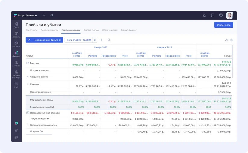 В системе финучета Аспро.Финансы удобно строить ПиУ так, чтобы у каждого направления был свой столбец — сразу видно вклад каждой статьи в результат сегмента. 1. Пропорция выручки. Если доля выручки сегмента — 60%, он принимает 60% соответствующих общих затрат. Пример: общая выручка 1 000 000 руб., «Онлайн» — 600 000 руб. (60%). Аренда 100 000 руб. → «Онлайн» берет 60 000 руб. 2. Пропорция прямых затрат. Чем больше сегмент тратит на собственную деятельность, тем выше его доля накладных. 3. Метод драйверов. Раскладываем по реальным драйверам: склад — по занимаемой площади, маркетинг — по бюджету на продвижение конкретного сегмента, поддержка — по числу обращений. Важно: для каждого класса расходов — один метод, без «ручных» исключений. Так отчеты сопоставимы между месяцами и кварталами. 1. Назначьте ответственного. Кто ведет распределение и отвечает за качество данных. 2. Определите стартовый период. Начинайте с текущего месяца. Историю можно подтягивать выборочно, но не тормозите запуск из-за ретроспективы. 3. Отмечайте доходы и расходы сразу в нужных сегментах. Не забывайте косвенные — без них прибыль «на бумаге» будет завышена. 4. Соберите ПиУ по каждому направлению. Единый формат, единые правила. 5. Проведите проверку. Легкий аудит: совпадают ли суммы по компании и сумма по сегментам, нет ли расходов «в воздухе», корректны ли ключевые распределители. После первых двух-трех циклов отчет начнет показывать реальную картину — где зарабатываете, где «топчитесь», где теряете. Смотрите на два показателя — маржинальность и чистую прибыль — и классифицируйте направления: Правильная сегментация финансов превращает «общую картину» в управляемую модель: вы видите, что тянет бизнес вперед, а что тормозит, и быстро перестраиваете приоритеты. Начните с простого набора правил и одного отчетного периода — и уже через месяц у вас появятся ясные решения: где инвестировать, что оптимизировать и что пора закрыть. Хватит гадать, какие направления приносят прибыль, а какие — съедают вашу выручку. Мы поможем вам навести порядок в финансах, чтобы вы видели всю картину и принимали верные решения. Запишитесь на консультацию и начните масштабировать свой бизнес.
