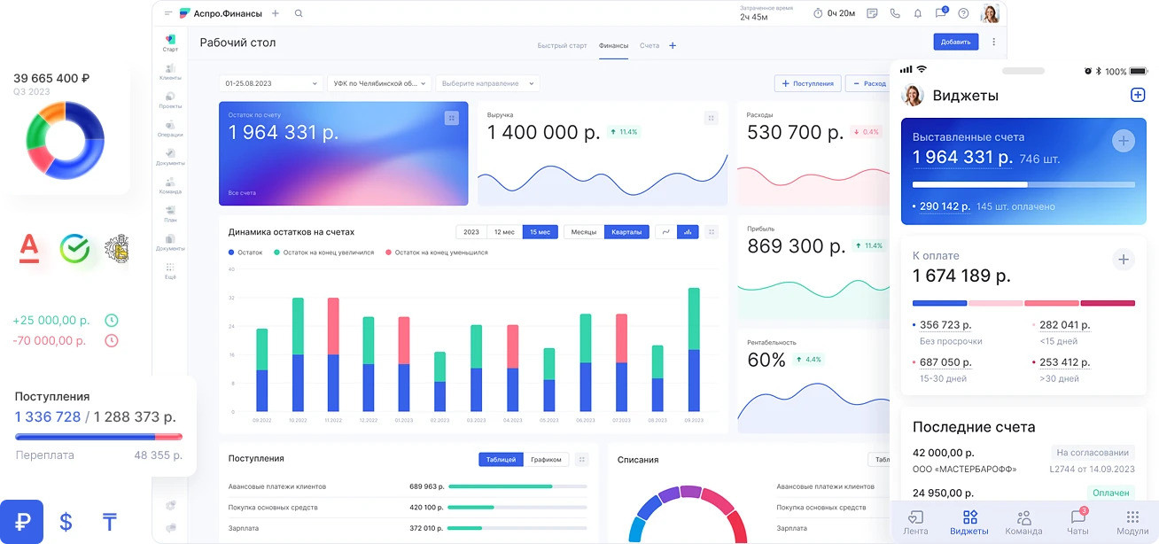 Аспро.Финансы — универсальная платформа для малого и среднего бизнеса, которая объединяет все финансовые процессы в одной системе. Она автоматизирует рутину и дает полную картину движения средств.