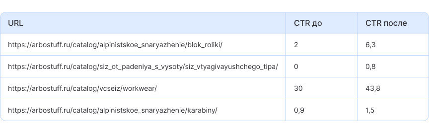 Для оценки CTR используют инструменты аналитики: Яндекс.Вебмастер, Google Search Console, SEMrush, Ahrefs. Они позволяют отслеживать показатели и выявлять слабые места. В интернет-магазинах важно использовать яркие призывы к действию, а также добавлять рейтинги, отзывы и акции. Для повышения привлекательности часто появляется необходимость включать диапазон цен и дополнительные листинги с товарами через Google Merchant Center. Это помогает выделиться среди конкурентов и увеличивает клики. Для бизнеса, который ориентирован на другие компании, важна точная и конкретная информация. В сниппете стоит указывать компетенции, кейсы, технические детали и отзывы клиентов. Такой подход создает доверие и стимулирует переходы. Для предприятий, которые работают в конкретных регионах, важна геозависимая информация. В сниппете обязательно должны быть указаны адрес, телефон, часы работы и отзывы. Регистрация в Google My Business и Яндекс.Справочнике позволяет появляться в локальной выдаче и картах, что увеличивает трафик из региона и повышает шансы на получение заявок. Микроразметка Schema.org позволяет дополнительно структурировать информацию о сайте. Она помогает поисковикам отображать расширенные сниппеты: рейтинги, цены, отзывы, FAQ и другую важную информацию. Такой расширенный сниппет выделяется в выдаче и привлекает больше внимания. Важно правильно использовать микроразметку, основываться на конкурентах и содержании страницы. Неправильная разметка может снизить эффективность или даже навредить позициям. 1. Цены и изображения товаров. 2. Звездные рейтинги и отзывы. 3. Теги. 4. Способы доставки и оплаты. 5. Контактные данные и режим работы. 6. URL и хлебные крошки. 7. Даты мероприятий или специальных предложений. 8. Вопросы и ответы (FAQ). Пример из практики — интернет-магазин снаряжения для альпинизма. После корректировки заголовков, добавления релевантных ключевых слов, цен и рейтингов, сниппеты стали заметнее. В результате средний CTR увеличился в 2–3 раза, а объем продаж вырос вдвое. Если после изменений показатели остаются низкими, возможные причины: В таких случаях стоит провести дополнительный анализ и возможно пересмотреть стратегию. Высокий CTR сниппета — залог увеличения трафика и клиентов. Чтобы его добиться, нужно комплексно подходить к оптимизации: правильно формировать заголовки и описания, использовать микроразметку и анализировать конкурентов. Постоянное тестирование и корректировки позволяют стабильно повышать показатели и превращать показы в реальные заявки. Ваши страницы в топе, но заявок мало? Проанализируем и оптимизируем ваши сниппеты: добавим рейтинги, цены, призывы к действию. Получайте больше переходов и заявок без роста рекламного бюджета. Если хотите, чтобы ваши страницы не только занимали позиции, но и привлекали клиентов, наши специалисты готовы помочь — настроим сниппеты, микроразметку и проведем комплексное SEO-продвижение. Оставляйте заявку, и мы увеличим трафик и продажи вашего сайта.