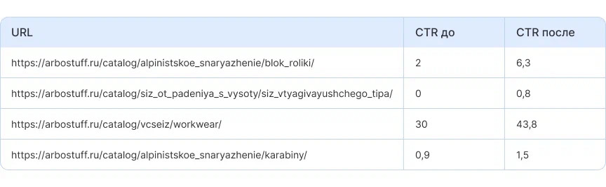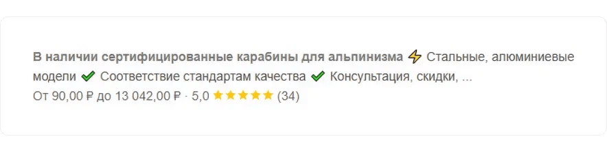 - Магия привлекательных сниппетов. Мы заметили, что у многих страниц был катастрофически низкий CTR (всего 0-2%). Проблема была в том, как страница выглядела в поисковой выдаче. Сделали сниппеты лучше: добавили рейтинг в виде звездочек, количество отзывов, эмодзи и диапазон цен. Сначала протестировали гипотезу на нескольких страницах, а после успеха — масштабировали. В итоге CTR по некоторым страницам взлетел до 13,8%.