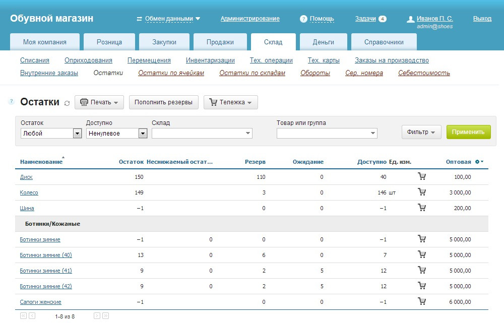 - МойСклад — простая система для автоматизации складского учета и розничных продаж.