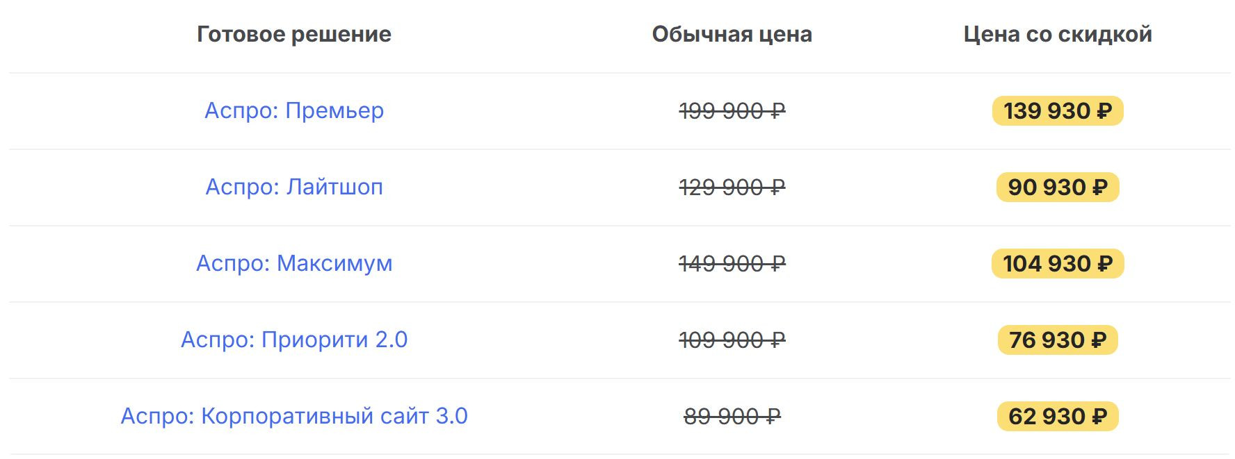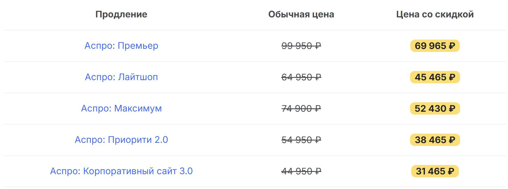 Черная пятница: скидки 30% на готовые решения Аспро и их продления