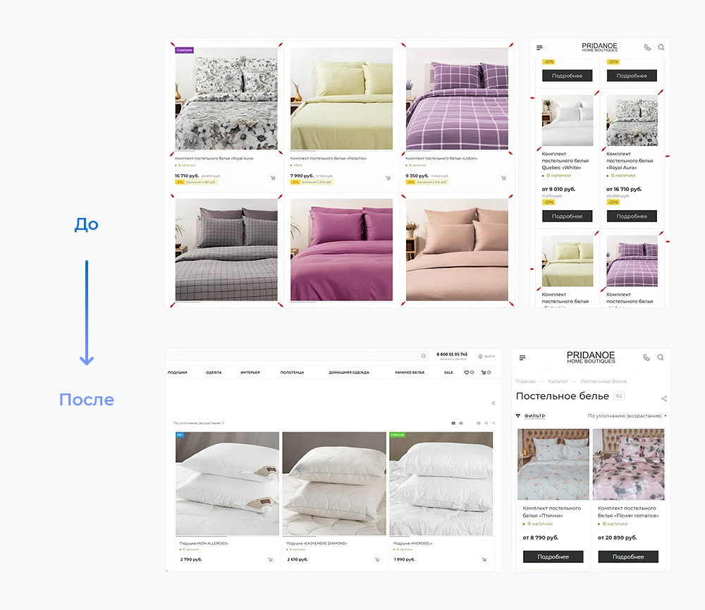 Магазин домашнего текстиля Pridanoe работает на рынке с 2001 года и имел собственный сайт для онлайн-продаж. Однако со временем платформа устарела и стала тормозить развитие бизнеса.