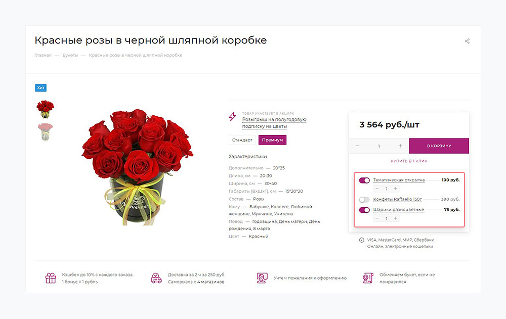 Новый блок с тематическими подборками позволил посетителям быстро найти подходящий букет и перейти к специальным коллекциям от флористов.