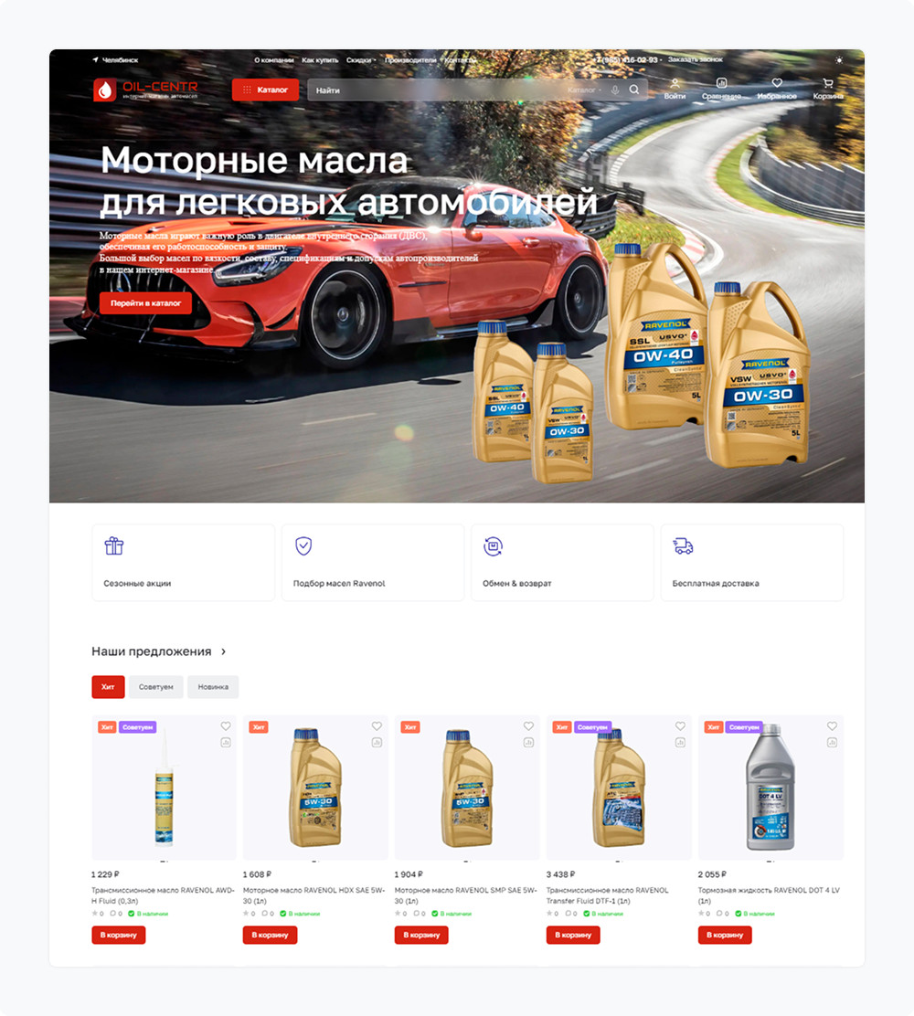 Владелец магазина автомобильных масел Oil-Centr понимает важность технологического прогресса. За четыре года работы компания дважды модернизировала свой проект, переходя на более современные платформы. В каталоге магазина представлено более 600 позиций товаров.