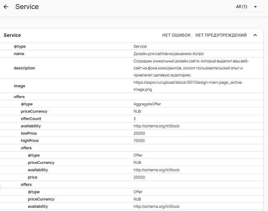 Когда страница правильно размечена, она чаще получает расширенный сниппет. Это может быть блок FAQ, отображение цены, рейтинг или наличие товара — в зависимости от типа разметки. Такая страница занимает больше места в поиске, выглядит солиднее и сразу отвечает на часть вопросов пользователя. Для бизнеса это значит рост кликабельности и увеличение трафика. Пример: два интернет-магазина продают один и тот же товар. У одного — цена, рейтинг и статус «В наличии». У другого — только заголовок и описание. Угадайте, на какой сайт перейдут чаще. Перед внедрением разметки полезно пройтись по страницам и понять, что можно структурировать. Разметка есть почти для всего, но важно определить приоритеты: Когда слышат «микроразметка», многие боятся десятков непонятных атрибутов. На практике все проще. Есть три способа получить корректную разметку: Google рекомендует JSON-LD. Он проще и лучше работает с ИИ. Добавляется через: Код можно размещать в Даже идеально написанная разметка может не работать из-за ошибок синтаксиса или несоответствия типов. После установки разметки отправьте страницы на переиндексацию через панели вебмастеров Google, Bing, Яндекс. Мониторьте изменения. У клиента — интернет-магазина сантехники на Аспро: Максимум — низкая кликабельность страниц. Команда добавила микроразметку, и через месяц CTR вырос на 50%. Микроразметка — про эффективность, а не для галочки. Она делает сайт понятным для поисковиков и ИИ, повышает видимость, дает дополнительные клики и укрепляет доверие к бренду. Самое важное — внедрить разметку быстро и без больших затрат. Если начать с ключевых страниц — товары, услуги, статьи — первые результаты видны через 2–4 недели. Через месяц—два можно разметить весь сайт и стабильно получать прирост трафика от 15 до 50% в зависимости от ниши.