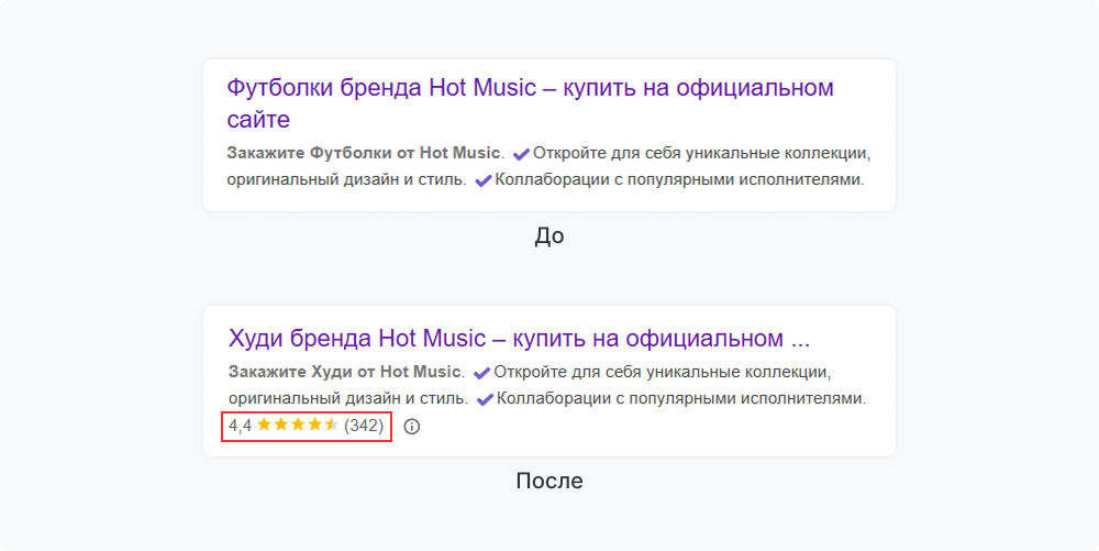 У нашего клиента уже сформирован узнаваемый бренд и налажены коллаборации с известными исполнителями. Требовалось грамотно представить эти преимущества в поисковой выдаче.