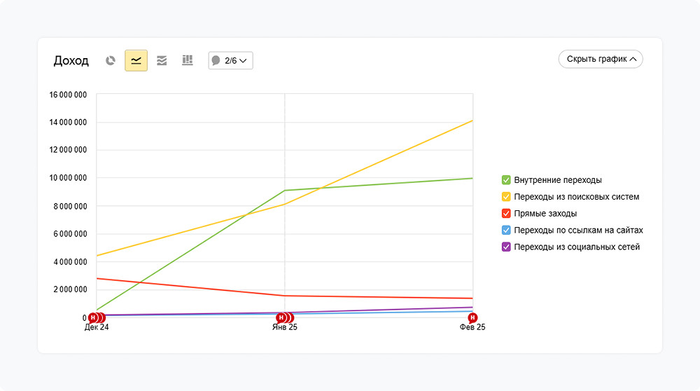 Первичное исследование показало наличие множественных входящих ссылок с сомнительных и нерелевантных площадок. Подобное окружение негативно влияло на ранжирование, особенно по запросам, содержащим название бренда. Принятые меры: Для fashion-проектов критично не количество ссылок, а их окружение. Ссылки должны размещаться на профильных ресурсах — только тогда поисковые алгоритмы признают сайт авторитетным. Дмитрий Першин, руководитель отдела продвижения и рекламы Аспро На следующей стадии мы сконцентрировались на масштабировании поисковой семантики. Была сформирована расширенная база брендовых фраз, включающая комбинации с категориями продукции и именами музыкальных партнеров. Для контроля эффективности подключили профессиональный инструмент мониторинга поисковых позиций. Ключевые улучшения сниппетов: Для максимизации отдачи от семантического ядра мы разработали план создания информационных материалов. Статьи нацелены на привлечение аудитории по образовательным и развлекательным запросам. Тематика публикаций строится вокруг имен исполнителей-партнеров. Готовые тексты проходят проверку на соответствие SEO-требованиям, включая корректное распределение ключевых фраз. Комплексная оптимизация интернет-магазина принесла следующие результаты: Наиболее впечатляющий результат демонстрирует динамика доходности компании за период работы. Согласно данным веб-аналитики, прибыль от поискового трафика демонстрировала устойчивый рост на протяжении двух месяцев и увеличилась в 3,5 раза. Параллельно фиксировался рост доходности от внутренних переходов между страницами. Посетители стали более активно изучать каталог, что дополнительно усиливает SEO-эффект через улучшение поведенческих метрик. За два месяца мы устранили слабые места проекта и заложили фундамент для дальнейшего роста в органическом поиске. Это только начало долгосрочной работы. Дмитрий Першин, руководитель отдела продвижения и рекламы Аспро Запуск сайта за 3 месяца — это быстро и экономично. Мы установим решение Аспро, наполним каталог товарами, добавим информационные страницы и подключим интеграцию с системами приема платежей, доставки и 1С.
