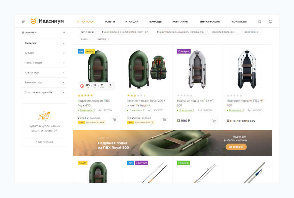 Рыболовы отзывчивы на акции и специальные предложения. Интегрируйте в сайт инструменты для проведения промо-кампаний: