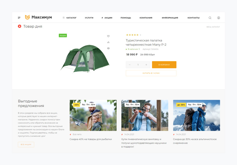 - Блоки «Товар дня» и «Хит продаж».