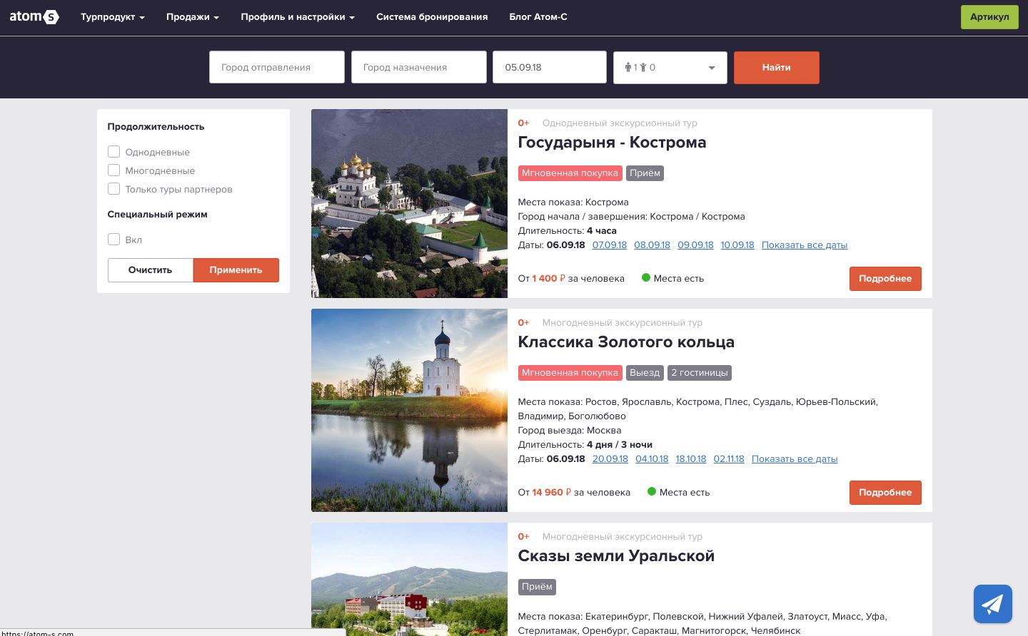 Мы делали примерно тоже самое. С разницей в том, что мы были про многодневные туры, а западные аналоги про однодневные. Их клиенты – частные гиды и небольшие экскурсионные бюро, а наши – туроператоры (более крупный бизнес).